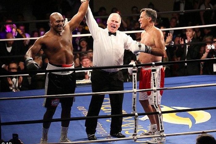 Former heavyweight champion, Evander Holyfield was back in the ring on Friday, May 15 in a charity match against former US Presidential candidate, Mitt Romney.