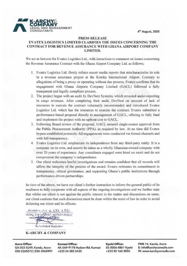 Evatex Logistics Limited, the company named in the controversial revenue assurance contract with the Ghana Airports Company Limited (GACL), has responded to the allegations levelled against it.