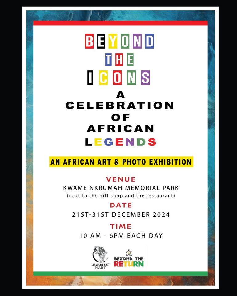 In a bid to explore Africa’s Heritage, the African Art Mart, in collaboration with Beyond the Return, is thrilled to announce the “Beyond the Icons: A Celebration of African Legends” Art and Photo Exhibition, set to take place at the Kwame Nkrumah Memorial Park from Saturday, December 21st to Tuesday, December 31st, 2024.