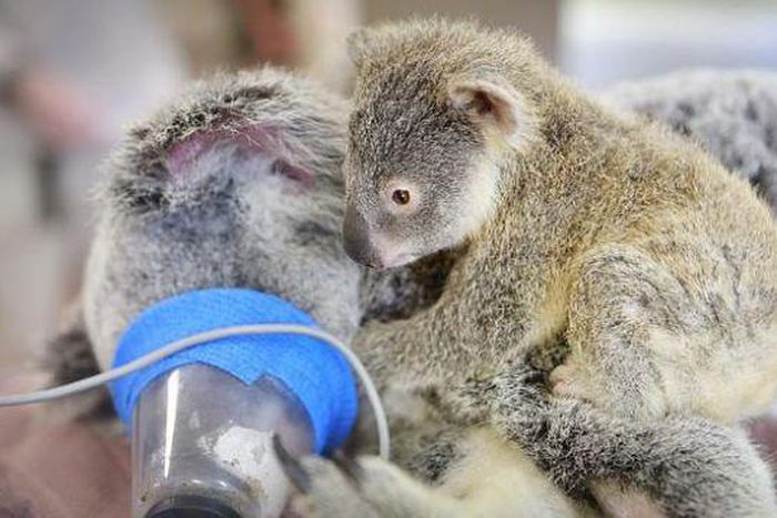 His mum was being operated on because she had a collapsed lung. Doctors allowed Phantom to cling on to his mum as veterinarians at the Australia Zoo Wildlife Hospital  worked on her.