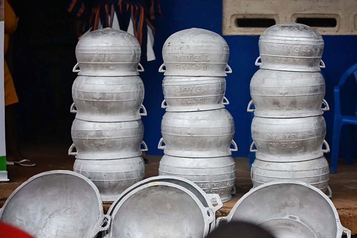 These locally crafted pots are a staple in many Ghanaian households, valued for their strength, heat retention, and the distinct taste they impart to meals. Produced mainly by skilled local artisans, the pots are often made from recycled metals such as aluminium sourced from old vehicle parts, roofing materials, and other metallic scraps.