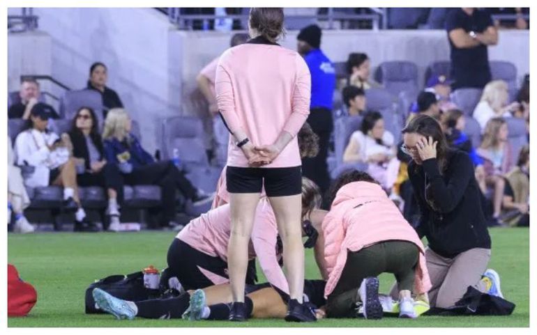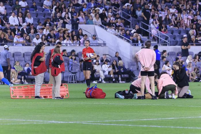 The 20-year-old defender fell to the ground during the second half of Friday’s game at BMO Stadium in California, where Angel City were playing against the Utah Royals.