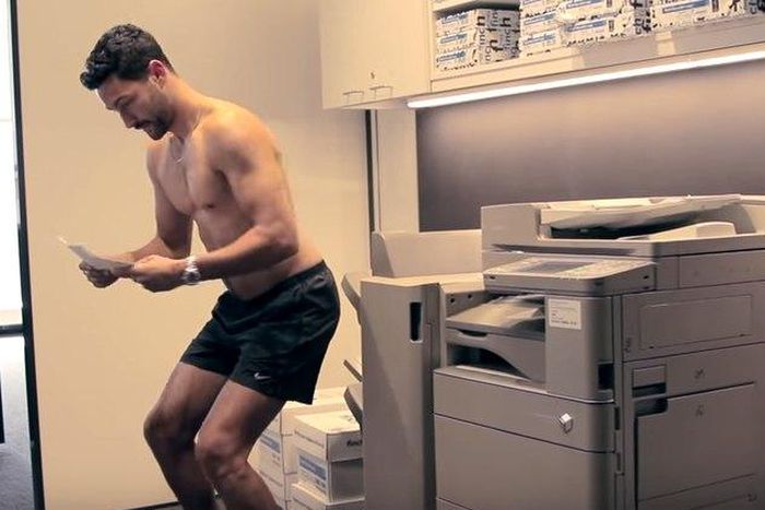 Vlogger, Noah Mills demonstrates the moves that will keep you sculpted at your desk, in the copy room and beyond in this guide (be sure to keep your clothes on at work!)