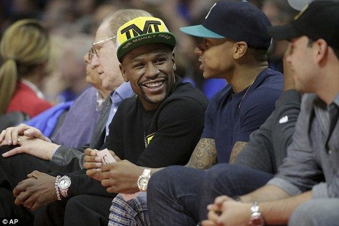 A relaxed mayweather laughed and joked as he enjoyed watching the likes of NBA stars Dwight Howard, James Harden and Blake Griffin in action during the Western Conference playoff semi-final.