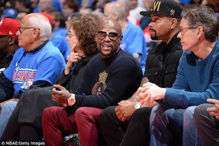 After defeated Manny Pacquiao in boxing's biggest fight of all time, Floyd Mayweather was seen in relaxed mood courtside watching the NBA play-offs between the Los Angeles Clippers and the Houston Rockets.