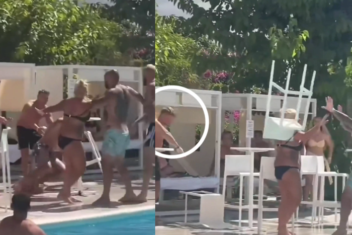 Footballer hits woman with chair into pool during heated fight (Video)