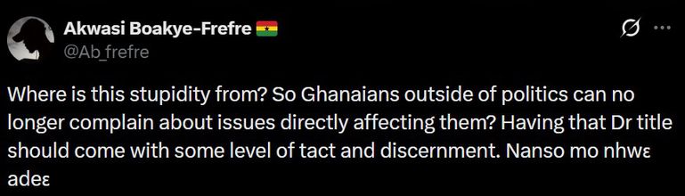 However, in response, Dr Awusi speaking an interview on Accra FM, strongly reprimanded him, stating: