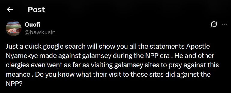 The CEO of the Ghana Free Zones Authority, Dr Mary Awusi, has issued a strong caution to the Chairman of the Church of Pentecost, Apostle Eric Nyamekye, over his recent comments on illegal mining, popularly known as galamsey.