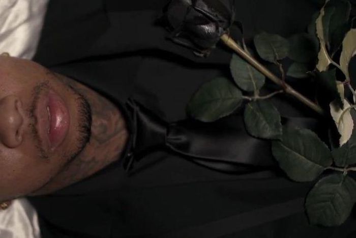 In the video, Tyga expresses his desire for wealth without fame. At the end of the clip, Tyga throws a rose in a coffin with himself in it. At then end of the clip, the words 'Fame is the devil' appears on screen.