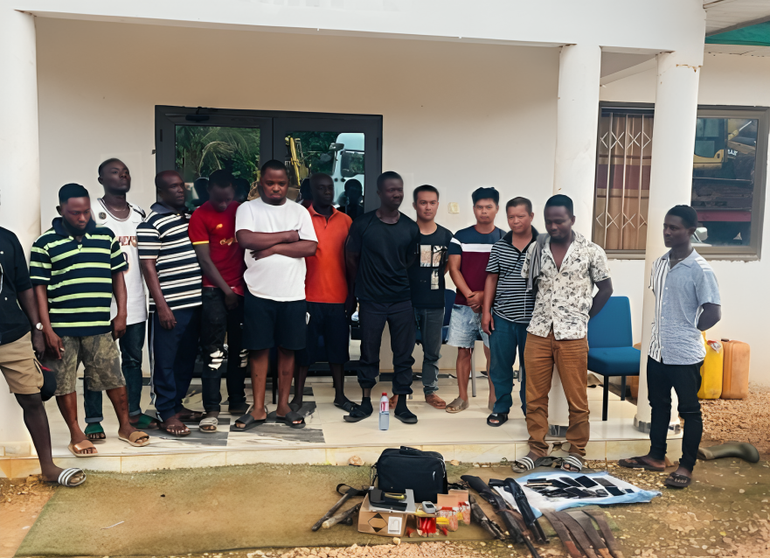 Following credible intelligence, law enforcement officers raided the illegal mining site, arresting eight Chinese nationals and eighteen Ghanaians who were allegedly operating deep inside the protected forest reserve.
