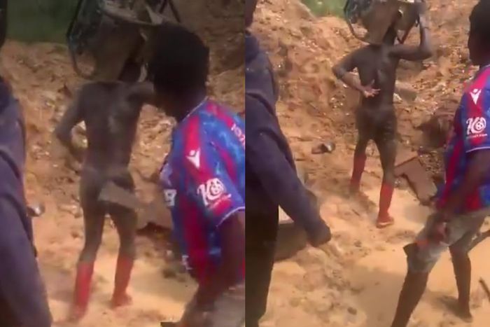 A disturbing video circulating on social media has captured the brutal assault of three individuals by illegal miners, locally known as 'galamseyers', over claims of stolen gold-bearing soil.