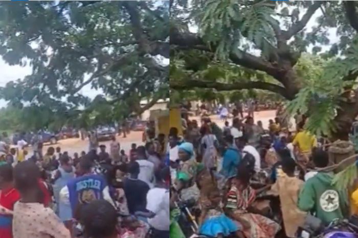Videos shared on social media show families, including women and children, abandoning their homes and seeking refuge at the Sawla District Police Headquarters.