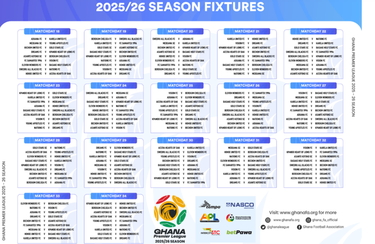 Regional rivalries feature heavily throughout the campaign. The Volta derby returns after several years when Hohoe United host Heart of Lions on matchday 17, before the return leg on the final day of the season.