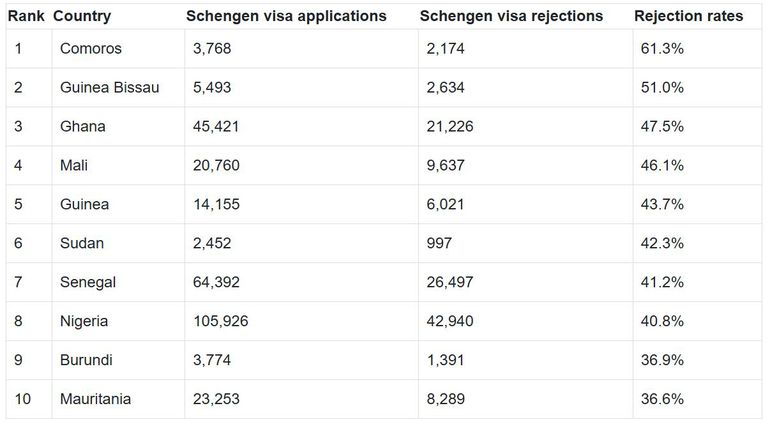 Ghana and 9 other African countries facing the harshest Schengen visa rejection rates