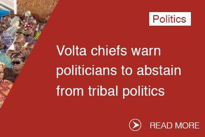 The chiefs of South and Central Tongu Constituencies in the Volta Region, have warned that they will not tolerate politicians who use tribal politics to solicit votes in the area.