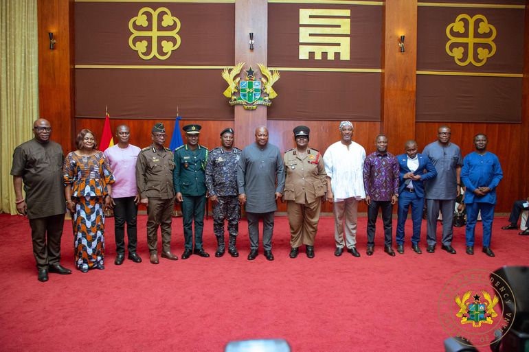 Thank you to our dedicated security service personnel for donating GHS 1 million to the Ghana Medical Trust (MahamaCares) Fund. This is a commendable, patriotic, and compassionate gesture from the Ghana Police Service, Ghana National Fire Service, Ghana Immigration Service, Ghana Prisons Service, NADMO, Commission on Small Arms and Light Weapons, Narcotics Control Commission, Ghana Refugee Board, National Peace Council, National Identification Authority, and the Gaming Commission