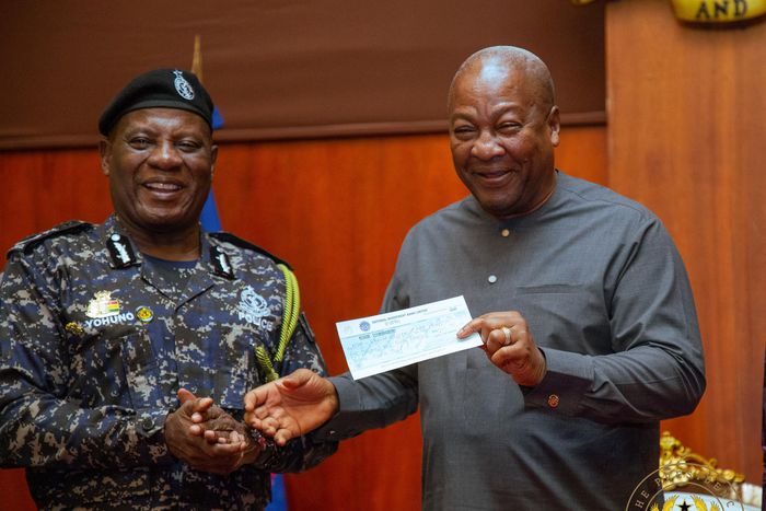 Mahama lauded the gesture during the formal presentation of the donation, emphasizing the expanded role that security services are playing in national development beyond their primary duties.