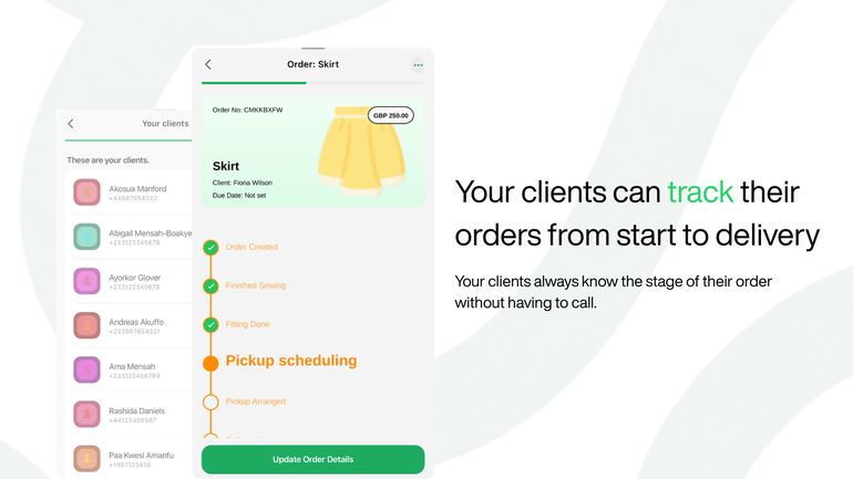 boafuo came directly from that research ethic. The founding team looked at the problem from multiple angles and through research that confirmed it at scale. On the client side, there was no transparency and no reliable way to track whether clothes would be ready on time. On the tailor's side, measurements were still kept in notebooks and client details had no proper system behind them. Diana Evans, co-founder of Haxo Labs, put it plainly: the fashion industry in Africa has come so far, with some of the best clothes in the world being made here, and yet the tools tailors were using to run their businesses had not kept pace with that excellence.