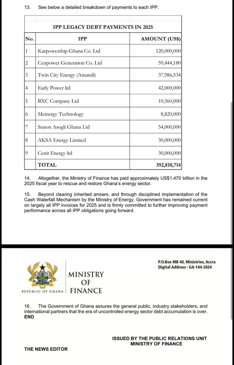 Altogether, the Ministry of Finance said approximately $1.470 billion was paid in the 2025 fiscal year to rescue and restore Ghana’s energy sector.