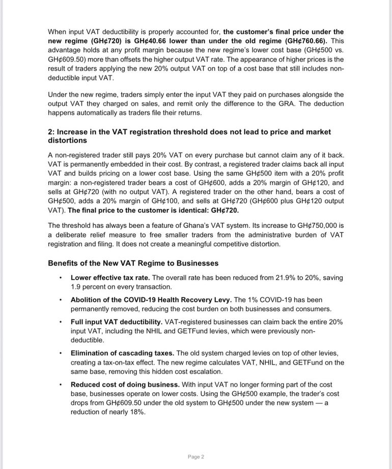 “The threshold has always been a feature of Ghana's VAT system. Its increase to GH$750,000 is a deliberate relief measure to free smaller traders from the administrative burden of VAT registration and filing. It does not create a meaningful competitive distortion.” the statement noted.