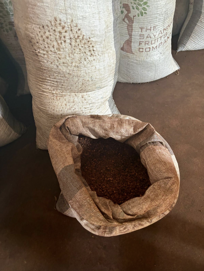 Once sorted, the kernels are crushed and dried to prepare them for roasting. The roasting process, which lasts between 30 and 45 minutes per batch, significantly affects the quantity and quality of the extracted shea butter.
