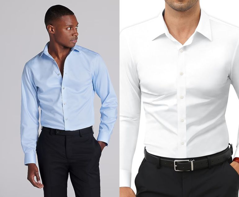 Choose a white dress shirt featuring a pleated or piqué front, a turndown collar, and double cuffs. This provides a crisp and formal foundation for your outfit.