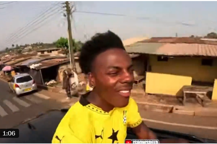 In the footage, Speed is seen seated in a moving vehicle on a busy Ghanaian roadway, likely outside Accra. Palm-lined streets, passing cars and everyday local buildings fill the background. Dressed in a bright yellow Puma jersey, a possible nod to his well-known love for football, he beams at the camera, points excitedly, and repeats, “I’m back home,” before revealing his maternal connection to Ghana. The announcement sent his live chat into a frenzy and sparked widespread discussion online.