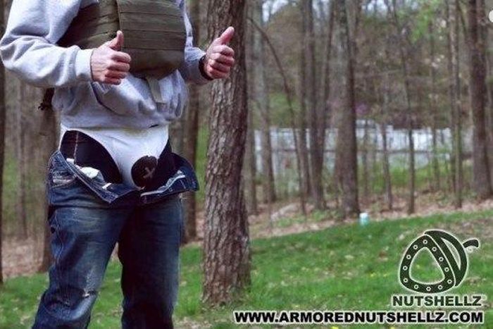 The CEO of Armored Nutshellz, performed the stunt in collaboration with his friend Matt Heck (the guy with the rifle), and recorded it to raise publicity for his Kickstarter crowdfunding campaign. The footage shows the 38-year-old placing the cup underneath his jeans and standing next to a tree while Heck takes aim. “We take product testing very seriously,” he later says on camera. “Don’t try this at home.” He then pulls down his jeans, and Heck pulls the trigger. Shockingly, Raber walked away from the life-threatening experiment unhurt, proving that his company does make the ‘strongest jockstrap in the world’. The video has been viewed over 90,000 times so far.