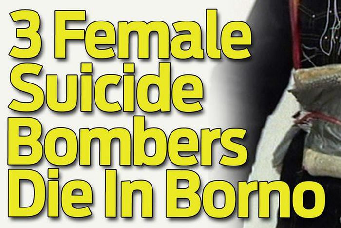 Three female suicide bombers have died in Borno State after the explosive devices they were carrying detonated before they reached their intended destination.
