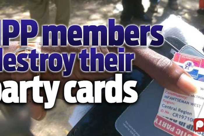 Some registered members of the New Patriotic Party on Thursday, destroyed their NPP Membership card in protest of the illegal suspension of the party's National Chairman, Paul Afoko.