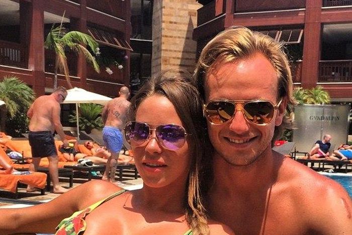 The Croatian midfielder is spending some time with his wife Raquel on holiday.