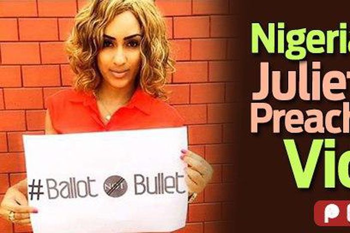 Ghanaian actress, Juliet Ibrahim has lend her voices to the campaign for a violent free elections as Nigerians go to polls today, Saturday, March 28, 2015 to elect a new president.