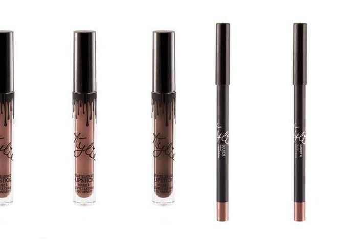 The Kylie Jenner lipkit is made in a pack of two products; a liquid matte lipstick and a "biodegradable" lip liner in three different shades: Dolce, True Brown and Candy.