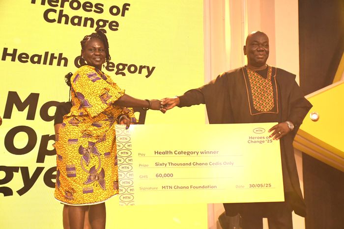 Martha Opoku Agyemang, founder of the Kids and Single Parents Care (KSPC) Foundation, has been named the MTN Hero of Change for the Health Category at the 7th Season of MTN Heroes of Change awards. She received GH¢60,000 to support her ongoing work with children living with cerebral palsy and other special needs.