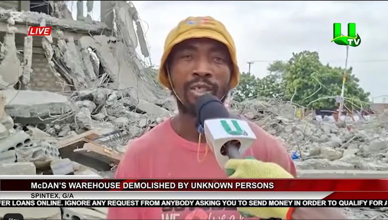 A warehouse reportedly owned by Ghanaian business mogul Dr Daniel McKorley, popularly known as McDan, has been demolished by individuals alleged to be national security operatives. The incident occurred along the Spintex Road in Accra on the evening of Monday, 28 July.