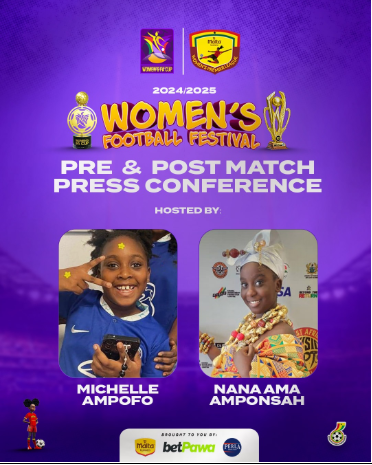 Nana Ama Amponsah, 11, and Michelle Anyankwabea Ampofo, 8, will take centre stage as hosts for the festival. Nana Ama, a Stage 5 pupil from Seed of Faith School in Accra, will lead the pre-match discussions and post-match press conference for the Malta Guinness Women's Premier League final between Ampem Darkoa Ladies and Police Ladies.