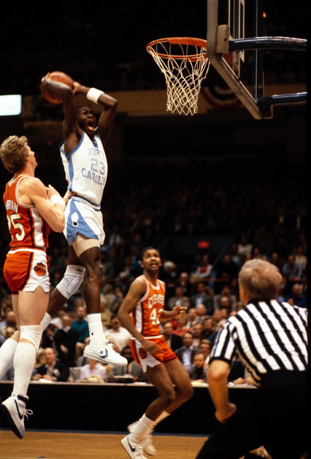 1983: Another Signature Move Another thing Jordan became known for during his time at Carolina? His aerobatic jumps and dunks . Collegiate Images - Getty Images