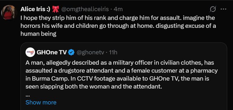 Meanwhile, the incident has drawn widespread condemnation on social media, with many users calling for the soldier’s immediate dismissal and prosecution.
