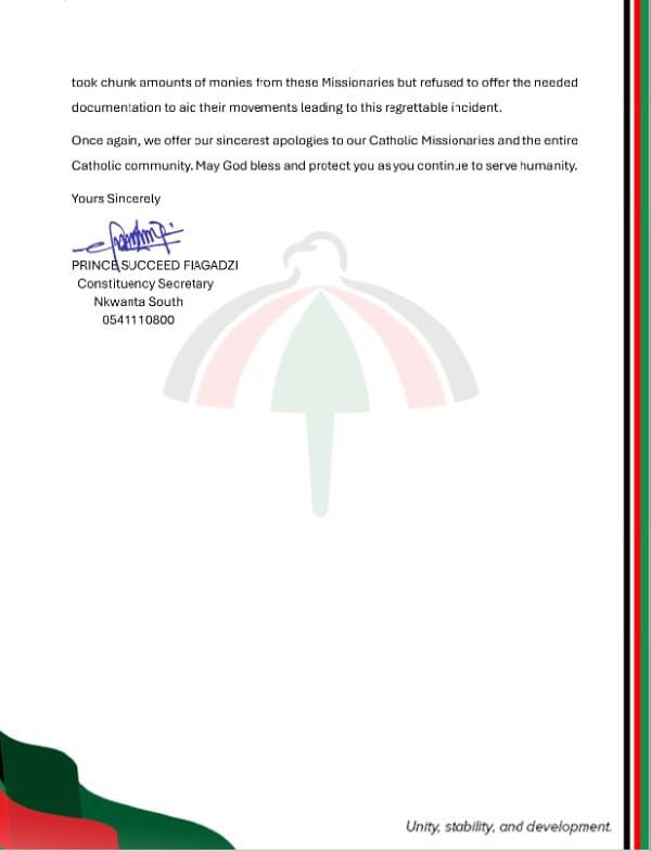 Fiagadzi further stated that the constituency leadership of the party has since visited the priests and apologised to them.