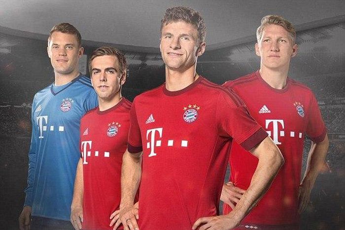 Photos of Thomas Muller, Bastian Schweinsteiger and Philipp Lahm in the new kit were use to unveiled the new strip.