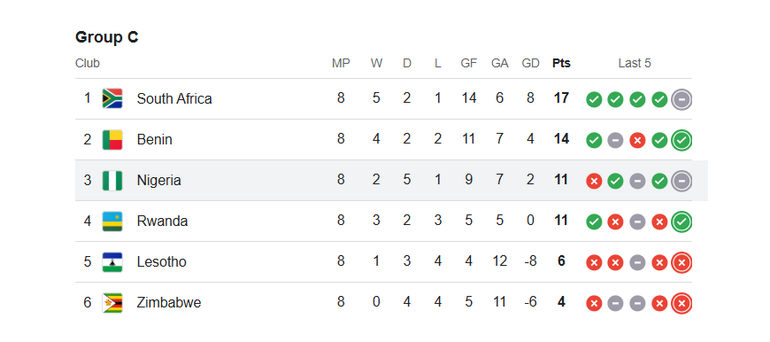 Though they would still hold the advantage on goal difference (+6), the pressure would intensify ahead of their remaining fixtures against Benin and Zimbabwe in October.