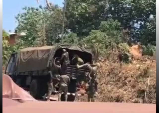 While en route, a military truck carrying personnel stopped upon noticing one of the mourners dressed in military camouflage.
