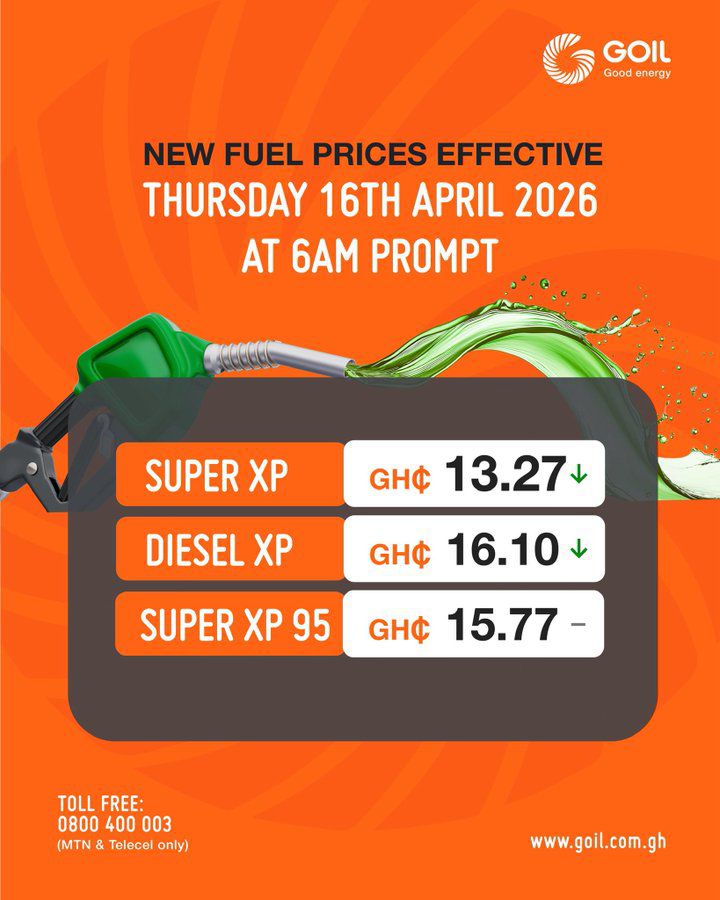 Goil is selling petrol at GH¢13.27 per litre, while diesel is going for GH¢16.10 per litre and Premium fuel at GH¢15.77.