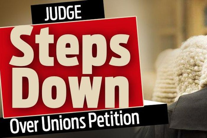 The High Court Judge sitting on the case involving the 12 labour unions and government , Justice Saeed Gyan has stepped down following a decision by the labour unions to seek his removal.