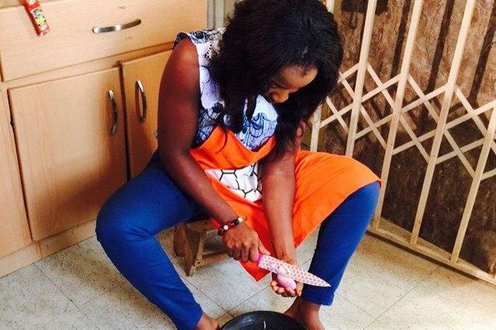 She shared a picture of herself about to do some grinding in an “Asanka whiles she was helping out with the cooking for her TV show “Guess Who’s Coming For Dinner”. The show is aired on GhOne on Sundays at 5:30pm.