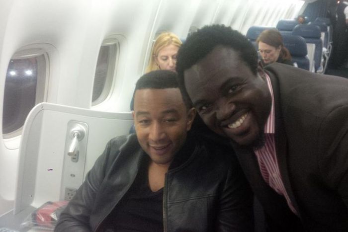 Fred Nuamah, the founder of Ghana Movie Awards, grabbed a photo opportunity with R&B superstar, John Legend when the two boarded a Delta Airline flight from New York to Cannes.