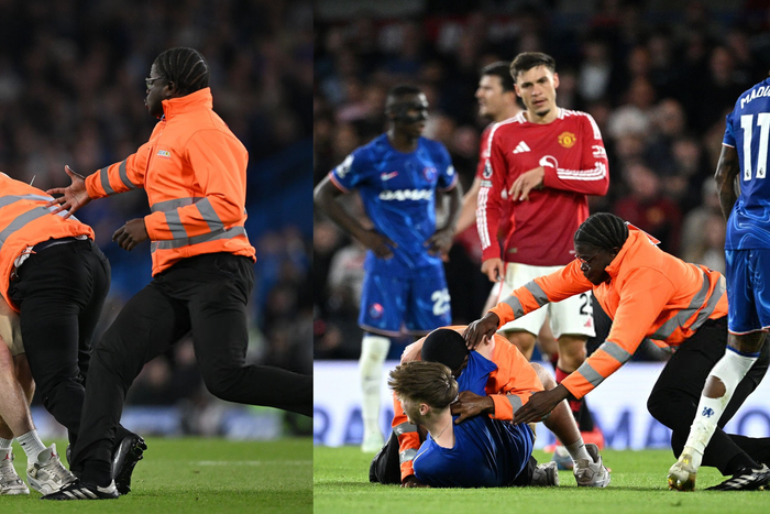 A dramatic moment during a Premier League game at Stamford Bridge saw a pitch invader tackled to the ground in a style fans compared to WWE wrestling.