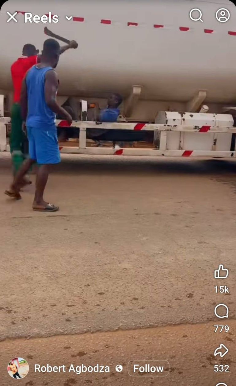 A fuel tanker driver, in a fit of rage, attàcked a young man with a màchete after discovering him lying inside the fuel tank cage of his truck. pic.twitter.com/h1E6XLEhJu