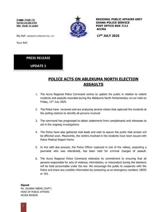 This development was contained in a press statement issued by the Greater Accra Regional Command of the Ghana Police Service, dated Thursday, 17 July, and signed by Superintendent Juliana Obeng, Head of Public Affairs.