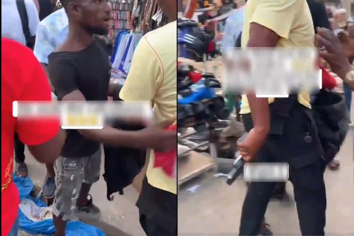 An intense confrontation between a police officer and a suspected thief, who allegedly stole a calculator from a shop in Adum-Kumasi, escalated when the suspect resisted arrest, prompting the officer to draw a handgun. pic.twitter.com/zTnJVU4wFC